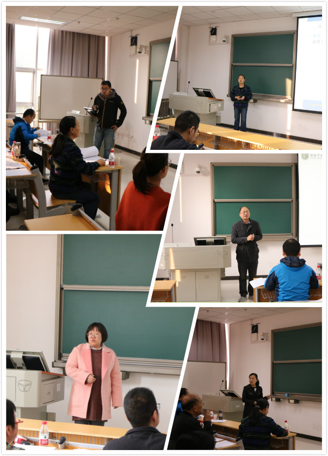 各参赛教师从课程定位与目标、课程内容与方法、教学展示、教学资料等四个方面进行了汇报,并认真回答并听取专家组成员提出的问题和改进意见。经过近一天的说课达标活动,两个教研室的参赛教师均能够认真对待本次说课达标活动,大多数课程资料准备充分,社情、学情分析到位,教学目标明确,教学内容丰富,教学方法与手段运用得当、评价方式多元,能够较好地反映出我院专任教师的精神风貌和开展课程改革的能力和水平。