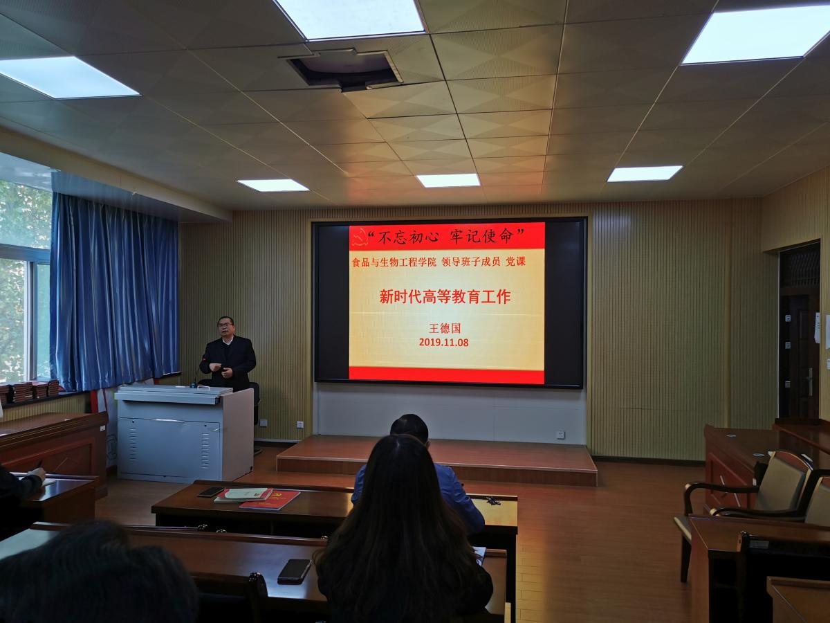 为深入贯彻落实“不忘初心、牢记使命”主题教育,切实把握高校立德树人根本任务,11月8日下午,我院党总支组织全体教职工在食品楼二楼报告厅进行集中学习,院长王德国以“新时代全国高等学校本科教育工作会议精神”为主题为教职工上党课。