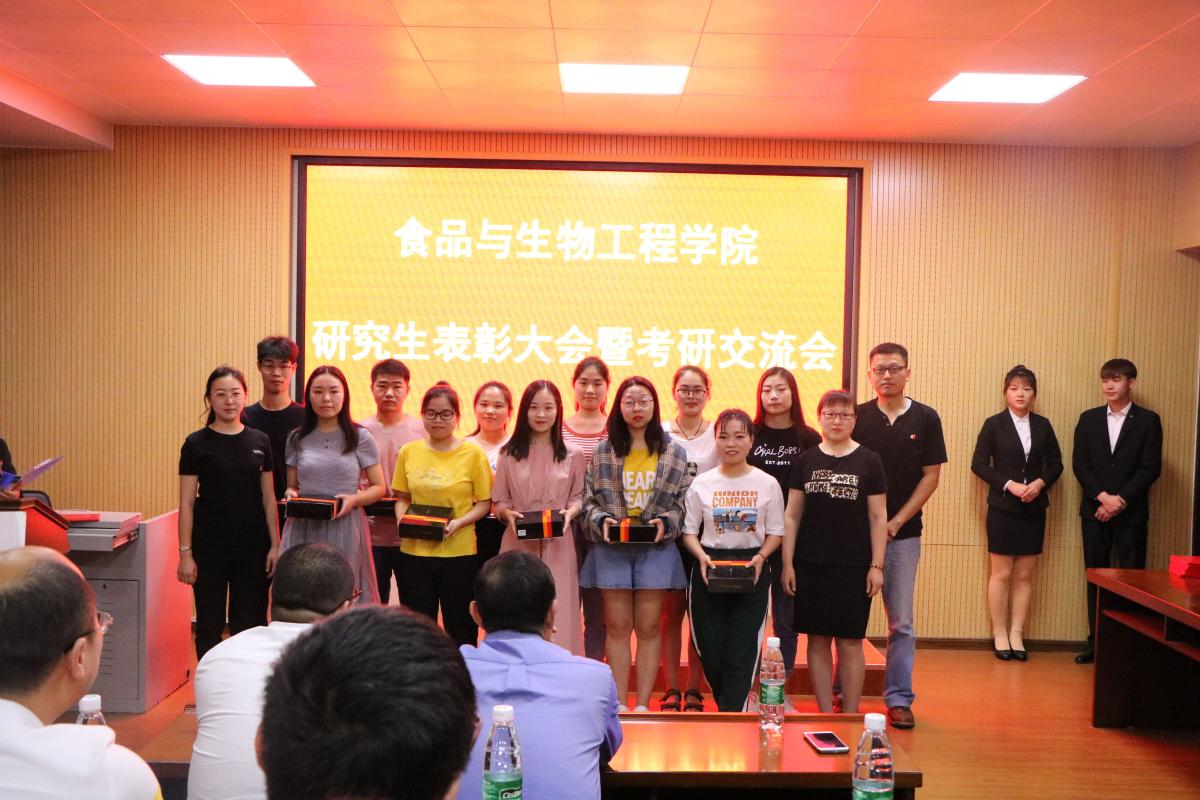 为深入开展学风建设,营造良好学术氛围,推动我院形成积极向上的学习风气,2019年5月20日下午六点,食品与生物工程学院2019届研究生表彰大会暨考研交流会在报告厅隆重举行。党总支书记刘学功,院长王德国,党总支副书记李鹏,团总支书记兼16、18级辅导员陈荣华,15、17级辅导员闫冬,15级食工一班班主任魏泉增,15级食工二班班主任李伟民,15级食安一班班主任李光辉,15级食安二班班主任程晶晶出席本次大会。