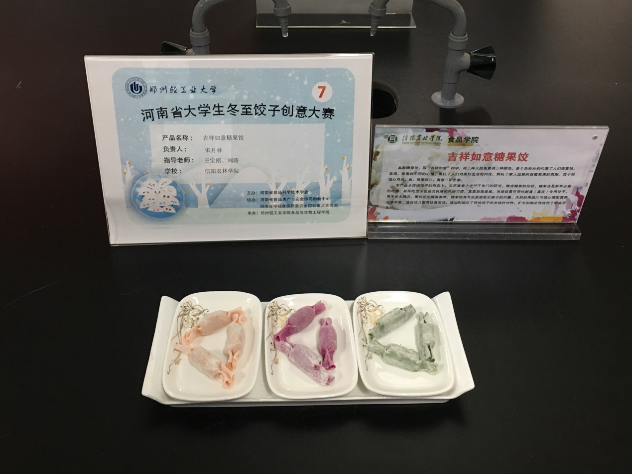 2018年12月22日,河南省第二届大学生冬至饺子创意大赛在河南省郑州轻工业学院举办,大赛由河南省食品科学技术学会主办,河南省食品生产与安全协同创新中心、河南省冷链食品质量安全重点实验室协办,郑州轻工业大学食品与生物工程学院承办。我院共有42个项目参赛,初赛后有31个项目入围决赛,经过激烈的角逐,最终获得5个奖项,其中一等奖2个,二等奖1个和三等奖2个。
