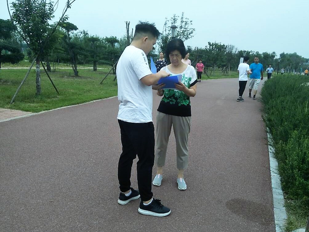 2018年7月3日,16级食安1班“扬食安风帆,航健康人生”东湖及鹿鸣湖食品安全满意度调研队开展调研进入了第二天。当天的活动内容主要是以问卷调查的方式对许昌东湖及鹿鸣湖的居民进行食品安全满意度调查,同时宣传食品安全知识。