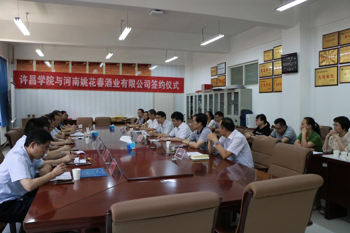 6月6日下午,我院与河南省姚花春酒业有限公司签订校企合作协议。县政协常务副主席谢明选、鄢陵县政府副县长王林,许昌学院副院长郑直、校企合作办公室主任郭超峰,我院党总支书记刘学功、荣誉院长陆启玉、院长王德国,河南姚花春酒业有限公司董事长罗群忠、常务副总李金亭等相关人员参加了签约仪式。