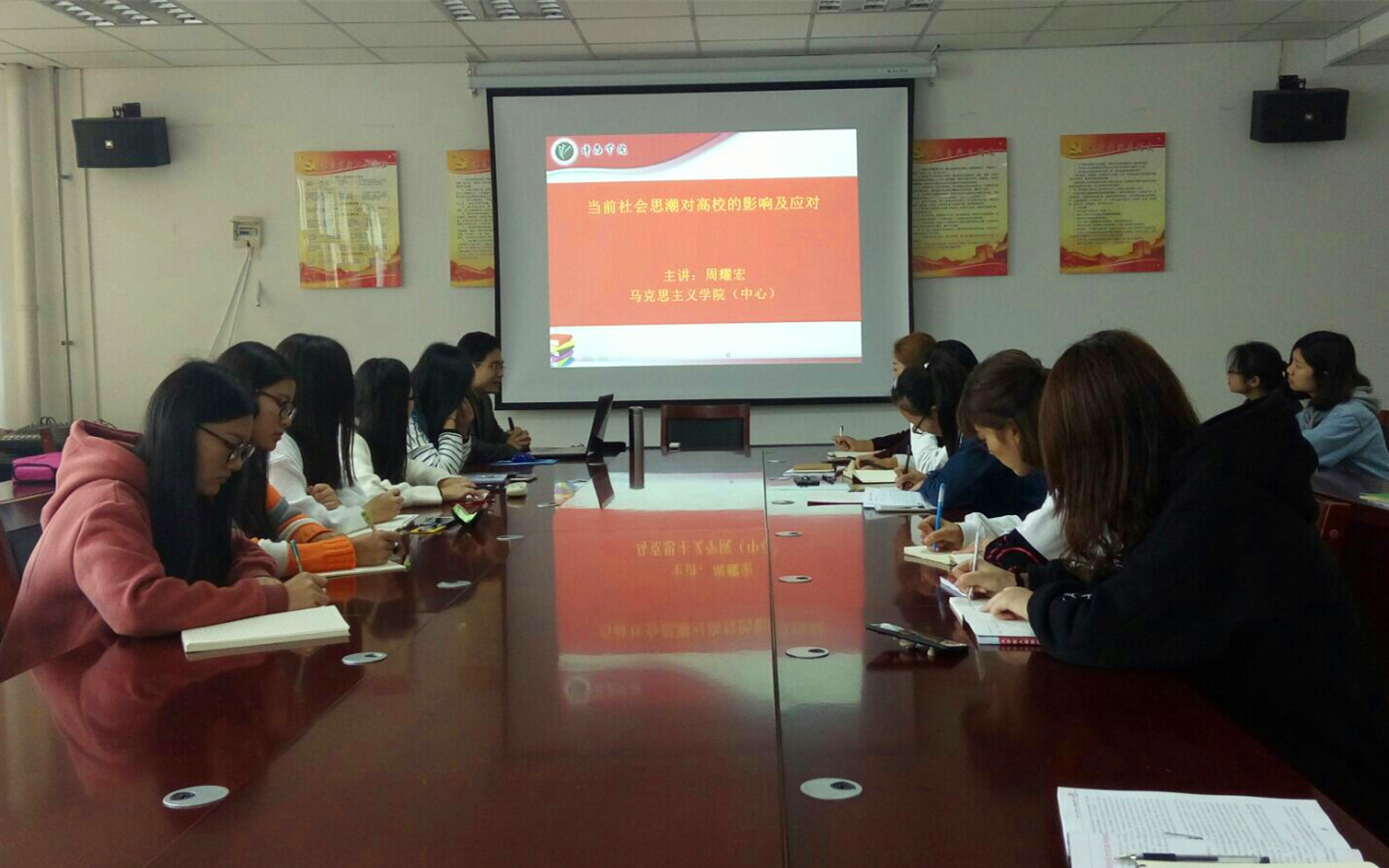 10月22日,在综合楼1130会议室,马克思主义学院的周耀宏副书记以“当前社会思潮对高校的影响及应对”为主题,展开详细的叙述,告诉了大家如何分辨正确的社会思潮以及合适的应对措施。