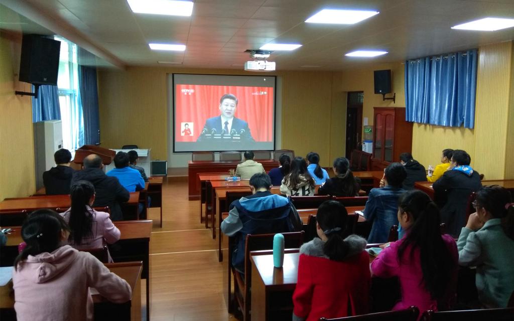 2017年10月18日上午,我院党总支组织全体教职工和学生党员40余人,在报告厅集中观看了中国共产党第十九次全国代表大会开幕会。