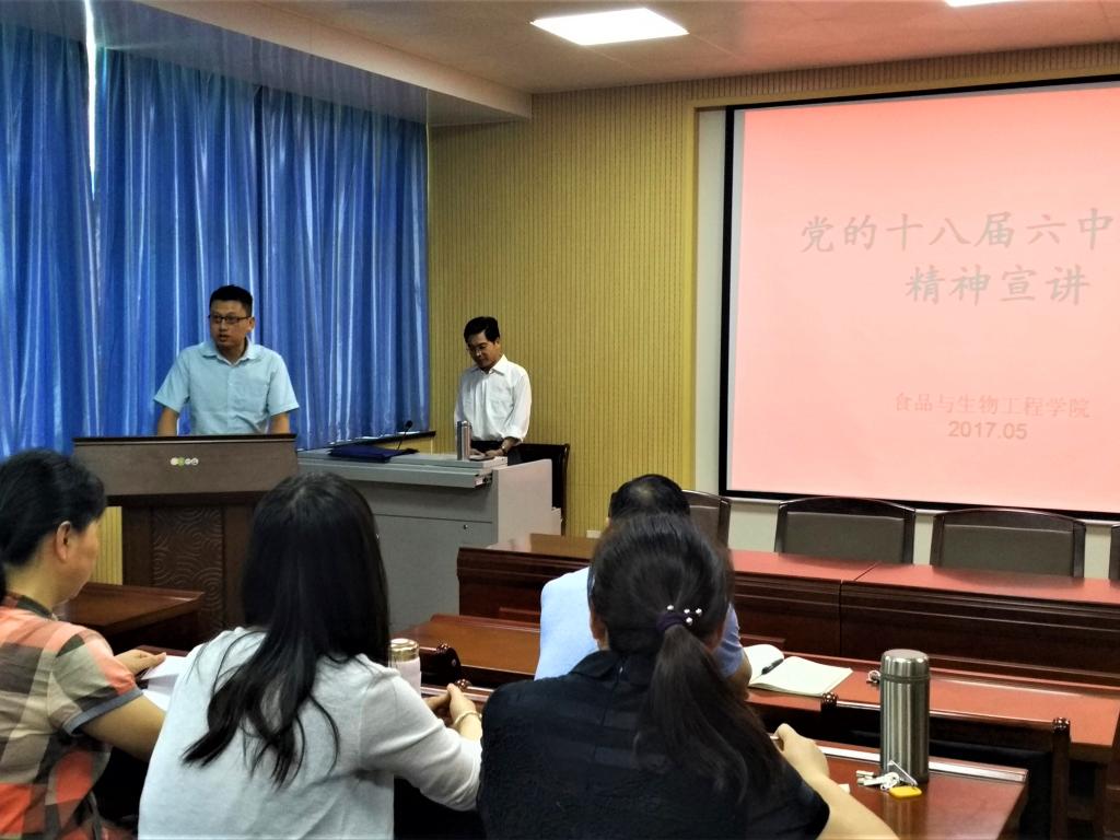 为进一步深入学习贯彻党的十八届六中全会精神,5月26日下午,我院在食品楼204报告厅举行了党的十八届六中全会精神宣讲会。我校“学习贯彻党的十八届六中全会精神宣讲团”成员,马克思主义学院党总支副书记周耀宏副教授应邀作主题报告。我院党总支书记刘学功、党总支副书记李鹏以及全体教师党员、全体学生党员共同聆听了报告。宣讲会由我院党总支副书记李鹏主持。