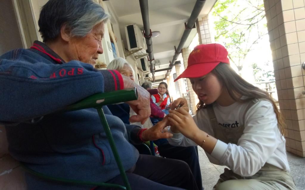 4月29日下午,在许昌市老年公寓,周倩、焦雪雪、杜雅萍等三名本期党校学员来自16级的入党积极分子一起与老人们共话家常。志愿者们在树荫下陪老人们聊天,给老人剪指甲、捶背。为了让氛围更加融洽,志愿者们谈起来了那个激情燃烧的岁月里的故事,老人们对这些兴致很高,和志愿者们从中国共产党建立谈到红军长征,从红军长征谈到新中国建立,又从新中国建立谈到现代社会的变迁,老人们讲的激情满满。为了让老人们平复一下激动的心情,志愿者们给老人唱起了一首首的歌曲,动人的歌声回荡在院子里。志愿者们纷纷表示,岁月给老人们的容颜刻上了皱纹,他们却用自己的双手在时代的发展上刻下了浓墨重彩的一笔。青年志愿者是社会爱心的代表,他们给老人们送去了温暖和关爱,更是为了弘扬中华民族尊老敬老的传统美德。