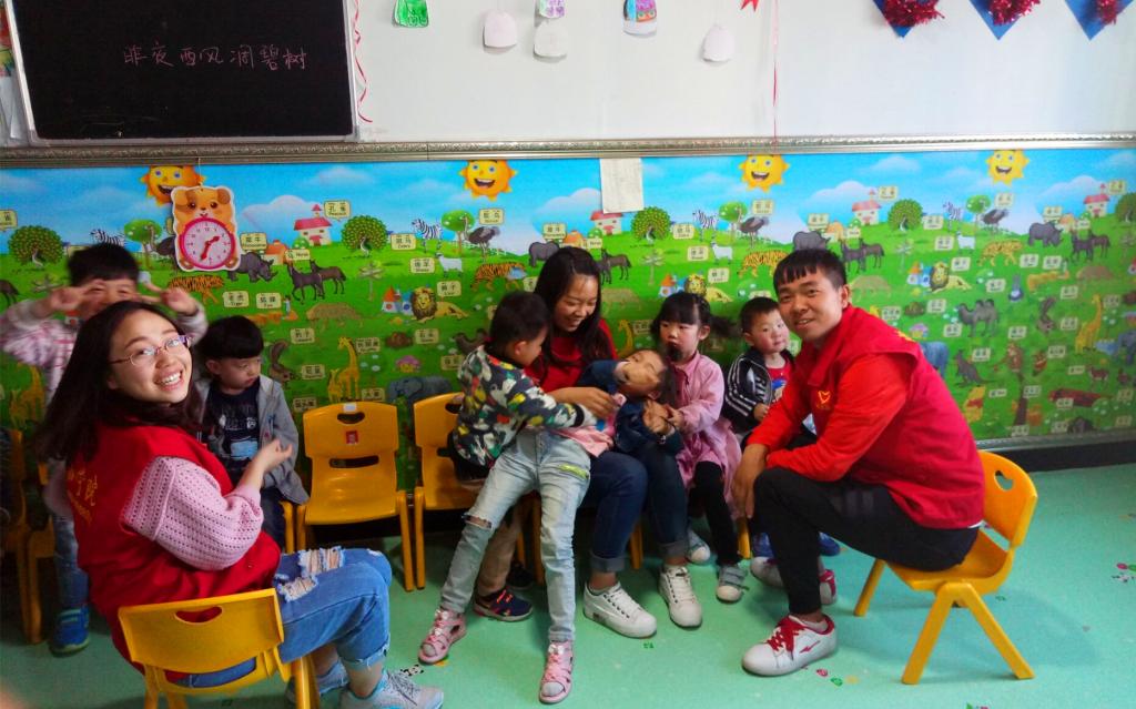 4月22日下午,在市残联残疾人康复中心,吕敏明、田鹏、戚家慧等三名本期党校学员与来自16级的入党积极分子一起与“折翼的天使”们共同度过了愉快的下午时光。爱玩爱动是孩子们的天性,志愿者们与孩子们玩游戏,讲故事,在故事中教孩子们拼音,数学和一些简单的生活常识。志愿者们用自己独特的方式温暖着孩子们的心,带给小天使们欢乐的同时,孩子们也让志愿者们重温了儿时的欢乐。