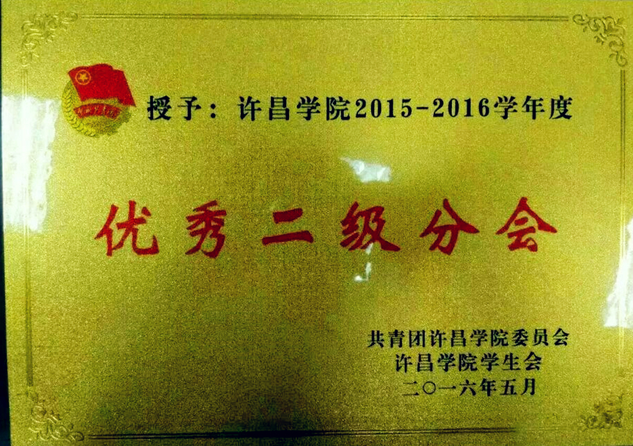 6月5日下午,在创新创业楼培训中心进行的许昌学院2016届学生会换届竞选大会上,我院本年度的学生会工作受到了校团委的表彰和嘉奖,在经前期申报、上交评优材料、院部走访、校学生会日常考评和学期综合评定等环节,连续第二年荣获“许昌学院优秀二级分会”称号。