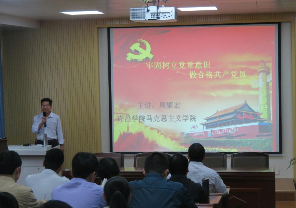 首先,周耀宏老师以“牢固树立党章意识,做合格共产党员”为主题,分别从学习党章的内容、意义和方法三方面展开,深入阐述了开展“两学一做”学习教育的重大意义和做“四讲四有”合格党员的深刻内涵,精彩而富有哲思的讲解让在座的党员对认真学习党章党规有了更加深刻的认识,进一步明确了开展政治理论学习教育的要求,同时对我院扎实开展全体党员教育起到了重要指导作用。