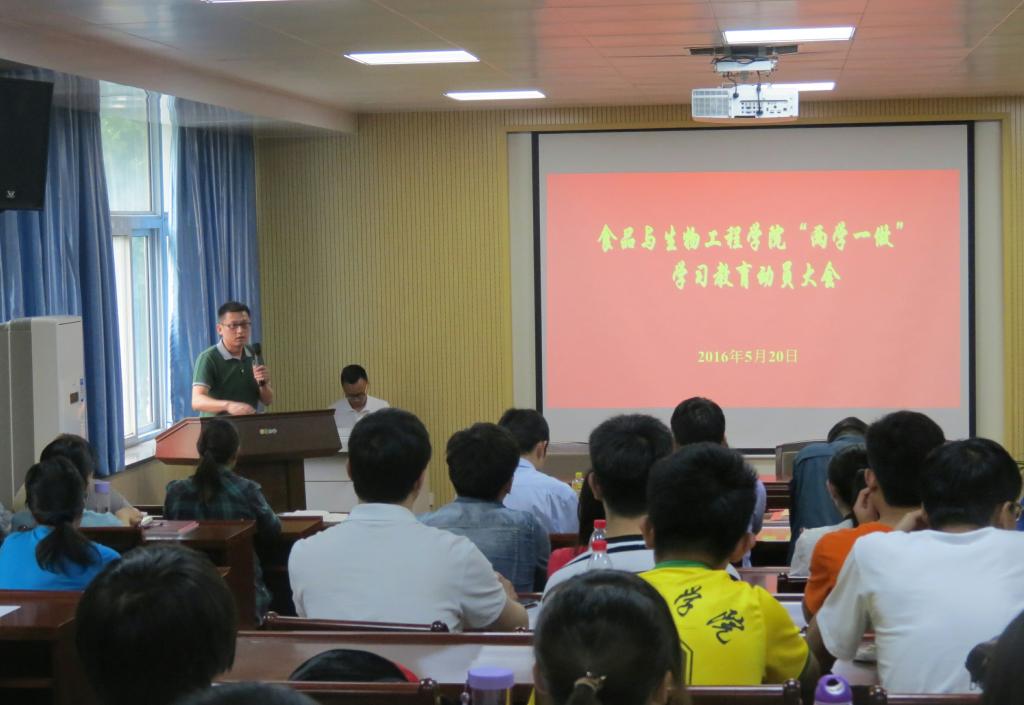 为在全体党员中贯彻落实好党中央及校党委关于“两学一做”学习教育的工作部署,我院于5月20日下午在食品楼报告厅举行了“两学一做”学习教育动员大会,并邀请我校马克思主义学院周耀宏副书记做辅导报告。院长王德国、党总支副书记李鹏以及全体教师、全体学生党员以及部分2015级入党积极分子共同参加了此次讲座。