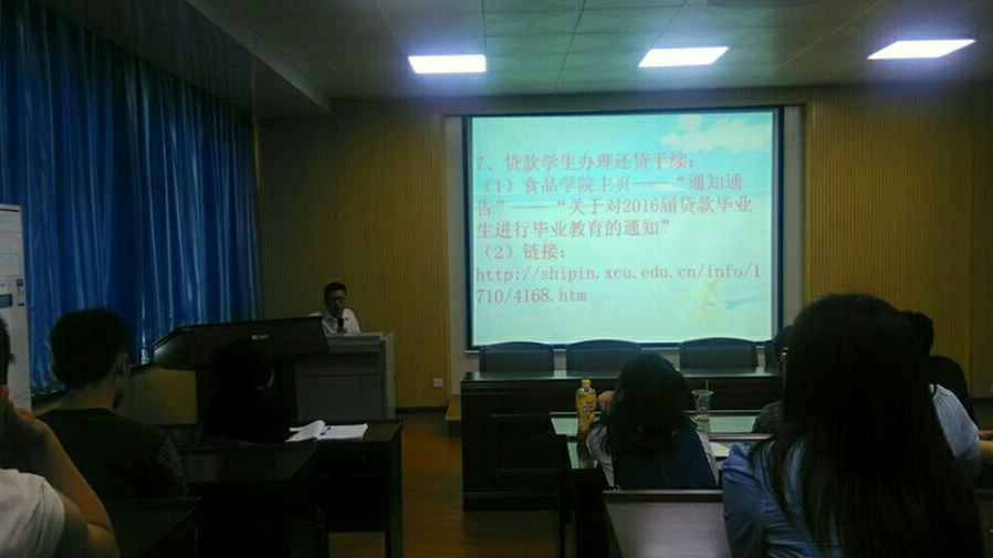 为切实做好我院毕业生文明离校教育工作,加强毕业生的服务和管理,5月19日下午,我院在食品楼报告厅召开了2016届毕业生安全文明离校教育和贷款毕业生诚信教育工作会,我院党总支副书记李鹏出席会议并主讲。