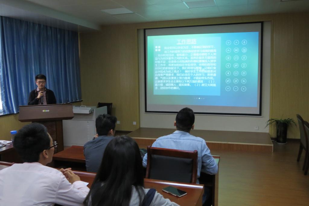 根据《2016-2017学年我院团总支学生会主席团成员换届方案》,我院新一届团总支学生会主席团换届竞聘工作于近日完成,新一批工作能力强、综合素质高、群众评议高的团学骨干进入新一届团总支学生会主席团,同时各部部长完成了新一轮更替。此次主席团的换届竞聘前期经过个人申请、所在班级内投票,共有9位候选人于5月13日参加了竞聘演讲,我院团总支书记陈荣华老师、团总支学生会全体成员,14、15级班长、团支书和编外雷锋连、食品营养协会负责人共同参与此次民主测评投票。