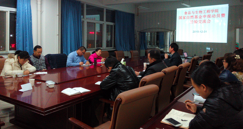 食品学院现有21位专任教师,其中有20位博士,目前主持国家自然科学基金项目3项,高层次项目相对较少,为此食品与生物工程学院高度重视,提前动员,提前准备,及早着手,调动全体专任教师的积极性。在科技处张志立处长指示下安排了基金动员暨经验交流会。