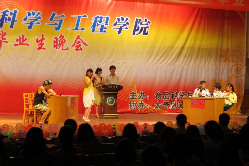 六月,亲爱的学姐学长们就要离开了,又是一年毕业季,在这个满是感动与不舍的日子里,我院为毕业生们送上了最诚挚的祝福。2013年5月25日晚7:30,我院在大学生活动中心为13届毕业生举办了以“魅力无极限,青春不散场”为主题的专场晚会。化学化工学院党总支副书记许志红、我院党总支书记赵建勋、院长刘学功、党总支副书记何庆华以及食品科学与工程学院全体师生观看了晚会。