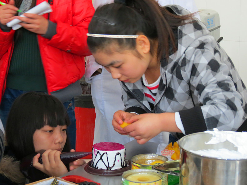 比赛过程中每位参赛选手根据评委老师的要求先制作蛋糕模板,然后认真构思,积极思考和其他队员协同合作自行进行蛋糕的设计和装饰。比赛的最后,每组参赛选手都拿出了令自己欣喜的作品。