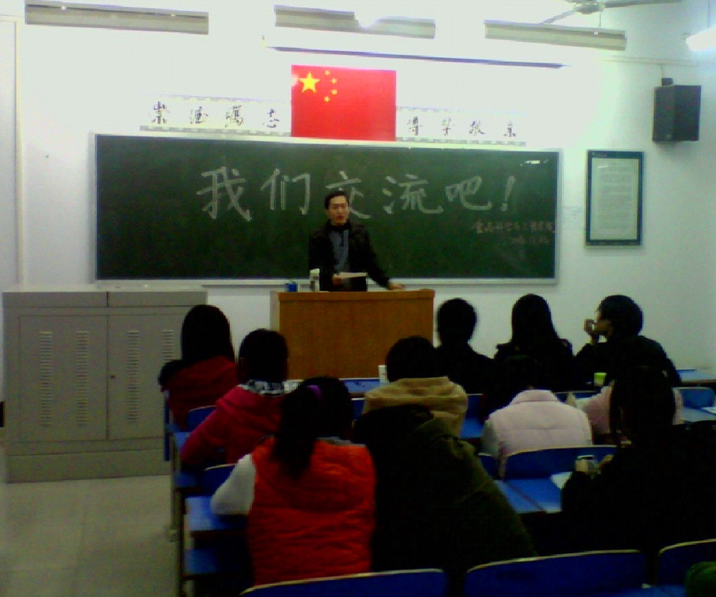 11月4日晚上7点,我院学生会学习实践部在C 301教室举办了一次全心全意与新生面对面答惑解疑的“约会”——“我们交流吧”新老生学习经验交流会。参加本次交流会的有12级全体新生,为12级解答疑问的嘉宾:09级王亚杰,10级张辉,10级郭山鹿,11级张刘迪等同学。我院学生会主席王亚运,文艺部部长宋玲玲,学习实践部副部长屈义也出席此次交流会。