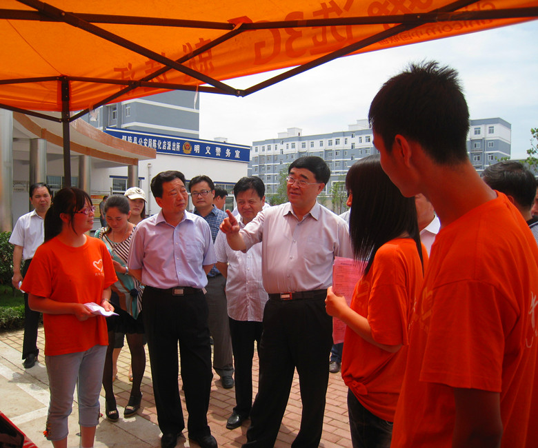 7月3日上午,鄢陵县陈化店镇明义社区里欢歌笑语,在许调研新型农村社区建设的省人大常委会党组书记、副主任曹维新,许昌市委书记李亚等省市领导与我院参加暑期社会实践活动的大学生们进行亲切交流并视察指导工作。市领导石克生、王登喜、王文杰陪同。