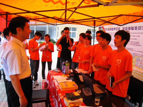 当天下午,校党委副书记王洪彬及河南电视台记者到达服务点看望慰问我院实践队员。看到王书记的到来,实践队员们争先向王书记汇报最近的社区服务的心得体会,诉说着目睹的新型社区对农村生活的极大改善与提高,王书记不时给予肯定与鼓励,并对我志愿者队员的工作情况进行了详细的询问,同时对下一步工作的开展做了具体的指导。“食品安全重于泰山,希望同学们的工作能够为社区居民的合理膳食和健康生活提供”,王书记最后强调说。