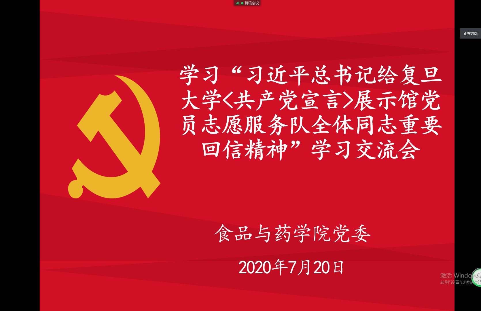 7月20日下午,我院党总支通过线上腾讯会议开展了全体党员学习习近平总书记给复旦大学<共产党宣言>展示馆党员志愿服务队全体同志重要回信学习交流会。