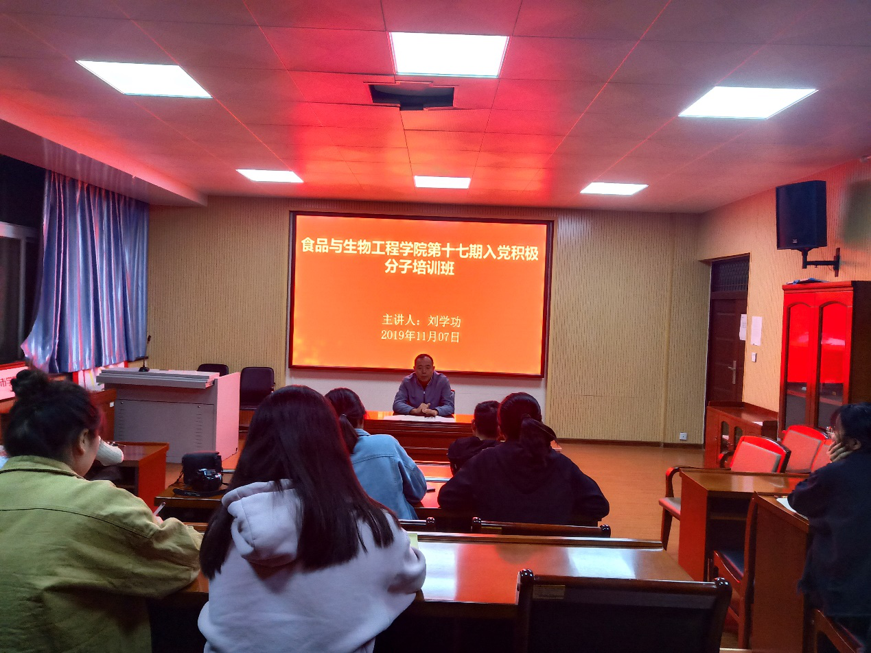 为进一步推动我院党建工作,加强对入党积极分子的培训工作,深化对党的基本理论、基本路线、基本纲领的认识,进一步提高入党积极分子的基础理论素养,特举办食品与生物工程学院第十七期业余党校。我院党总支书记刘学功、副书记李鹏、退休返聘老师赵建勋及我院团总支书记陈荣华、组织员周婷婷、辅导员闫冬、教师李光辉以及马克思主义学院教师分别授课,我院共16名入党积极分子参加了此次培训。