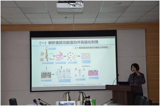 会上,中原学者黄继红教授从科研成果、平台建设、团队建设、学术交流等方面详细汇报中原学者项目“麦胚蛋白的功能解析及其产业化创新示范体系建立与推广”的完成情况,同时,介绍了项目未来研究重点和对团队发展的总体部署和规划。专家组在听取项目组汇报、审核有关材料的基础上,经过质疑和讨论,认为黄继红教授项目组超额完成了计划任务书预定的各项任务指标,一致建议通过验收,并将验收意见提交河南省科技厅审核。专家组指出,要充分利用项目实施期间获批的河南省小麦生物加工与营养功能重点实验室等科研平台,发挥团队优势,开展多学科交叉融合探索,引进和培养更多中青年拔尖人才,产生更多原创性成果,加快向药品级方向转化,实现小麦精深加工与功能营养成果转化持续提升,补齐我国农产品加工这一弱项。