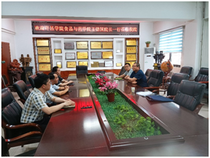 首先,河南科技学院食品学院李光磊院长对许昌学院食品与药学院王德国一行表示欢迎,并介绍了河南科技学院食品学院的发展历程、师资状况、科研平台建设等基本情况。食品与药学院院长王德国介绍了许昌学院食品与药学院的整体情况,专业构成及科研情况做了简单介绍。随后,李光磊院长就河南科技学院食品学院兼职研究生导师的基本要求做了介绍,并表示欢迎许昌学院食品与药学院教师到河南科技学院食品学院做兼职研究生导师。同时,关于食品专业工程教育认证与孙军涛副院长交换了意见。随后,李光磊院长带领食品与药学院王德国院长、孙军涛副院长,魏泉增主任参观了河南科技学院食品学院实验室。
