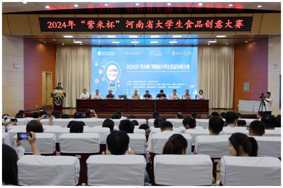 6月16日,由河南省食品科学技术学会、许昌市农业农村局、许昌学院和河南紫米食业有限公司共同举办的2024年“紫米杯”河南省大学生食品创意大赛在我校学术报告厅成功举办。副校长杜根远、河南省食品科学技术学会理事长沈祥坤、许昌市农业农村局局长张水根、河南紫米食业有限公司董事长王志磊出席活动。