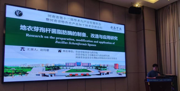 我院副院长肖付刚、教师赵钧馨受邀出席会议,赵钧馨作了题为《地衣芽孢杆菌脂肪酶的制备、改造与应用研究》的学术报告。