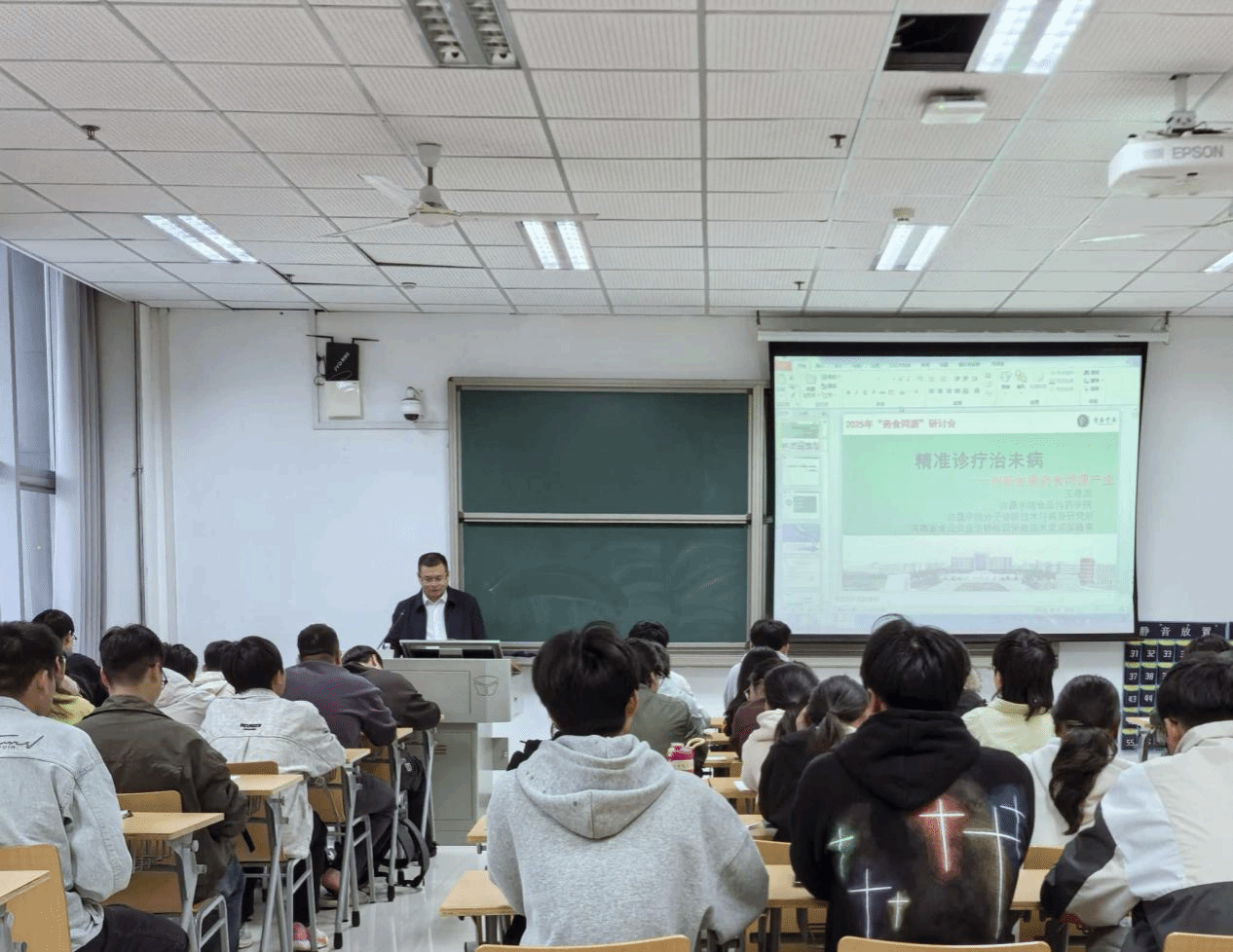 2025年10月17日下午,食品与药学院院长王德国教授为2025级生物制药专业学生讲授以“多学科交叉前沿技术密集的制药专业”为主题的生物制药专业导论课。