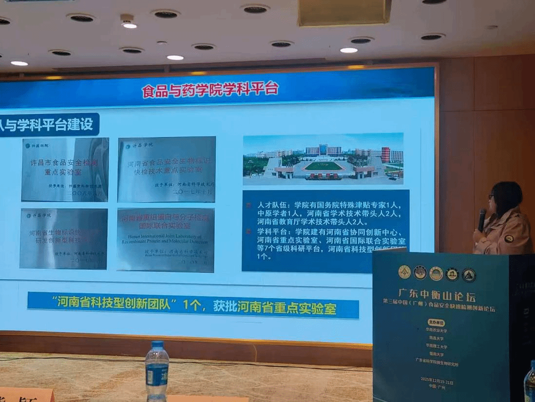 2025年12月19至21日,由华南农业大学等主办的“第三届中国食品安全快速检测创新论坛”在广州举行。会议以“数字赋能,智检未来”为主题,聚焦政策法规解读、行业趋势研判、前沿技术创新与智能检测应用,旨在打造一个集学术交流、技术展示与产业合作为一体的高水平平台。我院教师贾雪霞受邀参会并作了学术报告。