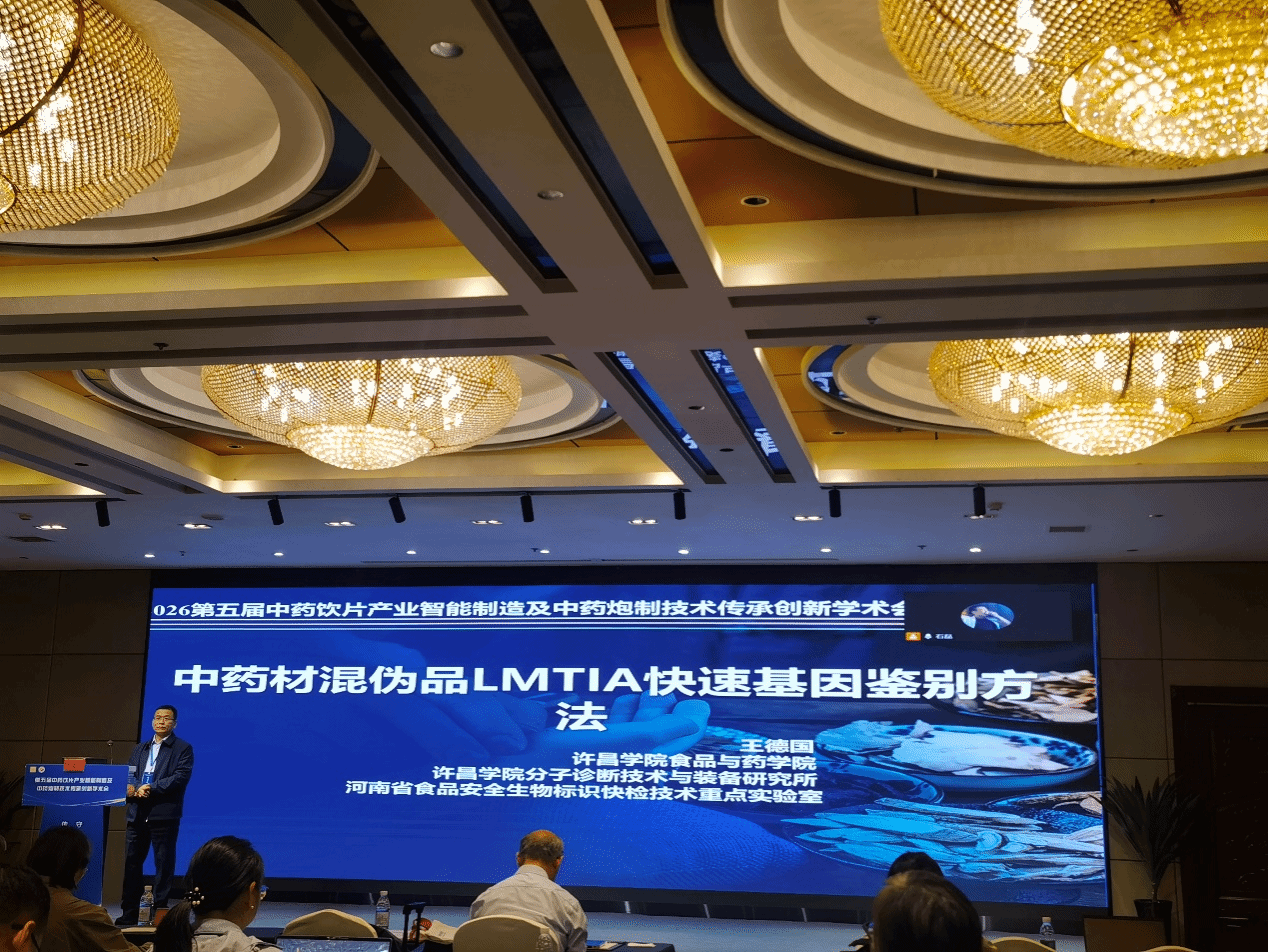本次会议以“传承‘智’造精华 守正匠心融创新”为主题,汇聚全国中医药行业专家学者共话产业发展。会上,王德国教授以《中药材混伪品LMTIA快速基因鉴别方法》为题,围绕中药材真伪快速鉴别技术创新与中药饮片质量安全管控展开交流,并介绍了LMTIA快速基因鉴别技术在中药材混伪品筛查、中药饮片质量控制等领域的实践应用,得到与会专家的高度认可与广泛关注。
