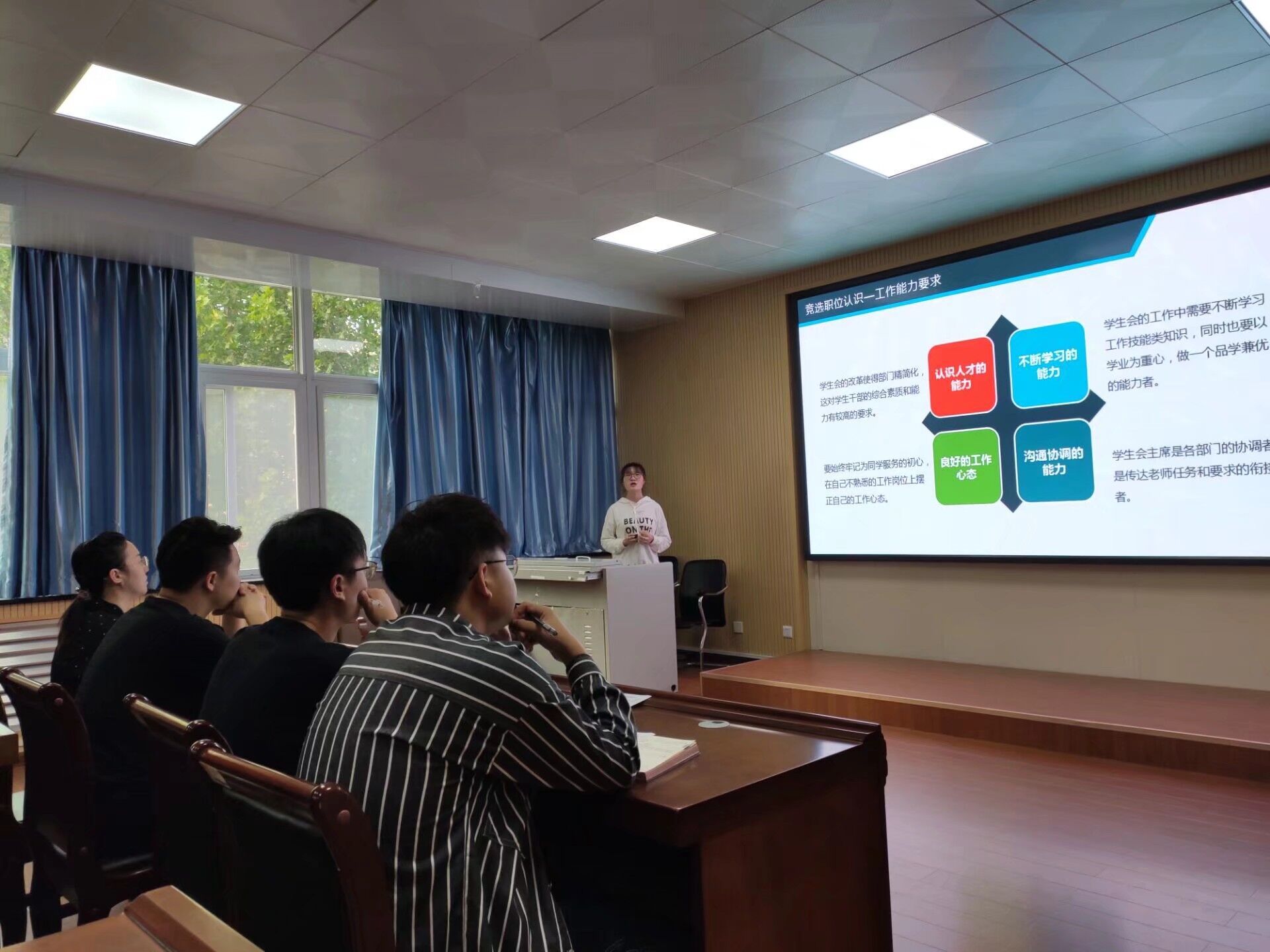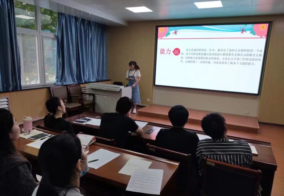 我院2019-2020学年团总支学生会换届工作在团委副书记闫冬的主持下于10月6日圆满落幕。本次换届秉着公开透明的原则,采用个人申报、公开演讲、现场答辩、组织考核的方式,从18、19级学生干部和优秀学生中进行选拔。
