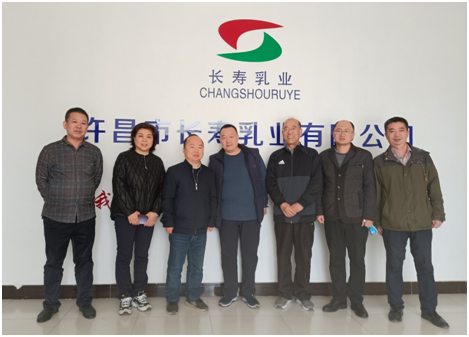 2023年3月29日下午,许昌学院食品与药学院副院长肖付刚一行4人到许昌市长寿乳业有限公司和河南荣华牧业有限公司考察洽谈产学研合作,同时开展访企拓岗活动。参加此次活动的还有实验室主任魏泉增,教师何胜华。