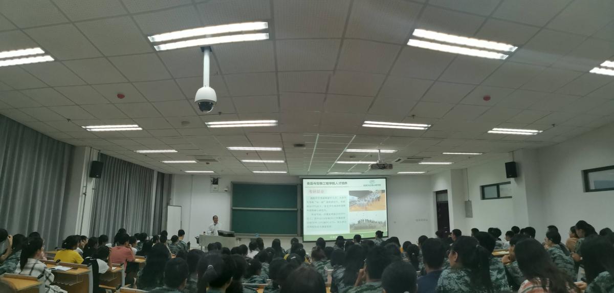王德国院长首先对全体新同学到食品与生物工程学院学习表示热烈欢迎,并希望新生同学们能尽快适应大学的学习和生活,尽快地做好职业生涯规划,踏实学习,勇于钻研,努力创新。王院长用亦师亦友的口吻,为同学们讲述了我院成立至今的发展历程以及食品专业的相关知识与发展前景,同学们反应热烈,现场气氛十分活跃。院长通过与同学们互动的方式讨论分析食品专业的就业优势,通过这种方式让同学们对自己所选择的专业有了更深的了解。随后,王院长对目前我院强大的师资团队、一流的科研平台做了详细的介绍,使同学们对自己将要学习的专业和大学生活有了进一步的认识。王院长最后强调,大学生活中要努力提升所选专业的知识水平,勇于开拓才能找到成功路。同学们一定要珍惜大学生活,充分利用学校提供的资源和条件,养成自主学习的习惯;锻炼自身能力,感悟大学精神,认识自我和成才途径,尽快融入大学校园生活。
