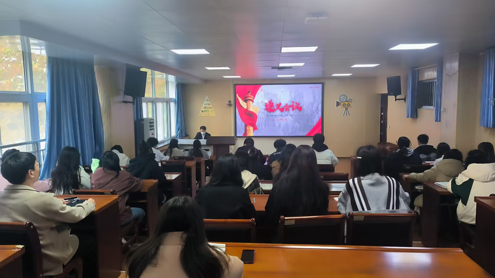 11月26日下午15:00,商学院“星火共传”遵义会议宣讲团以《遵义会议专题宣讲》为主题讲述分党课,宣讲团主讲人从遵义会议历史背景、会议内容、伟大意义、会议精神以及弘扬遵义精神五个方面进行了讲解。宣讲过程中,主讲人通过列举史实、视频辅助、答题小测试等方式全方位解读了遵义会议的主要内容和历史意义,并就遵义会议精神的内涵:坚定信念、实事求是、独立自主、敢闯新路、民主团结,一一做出具体阐释。