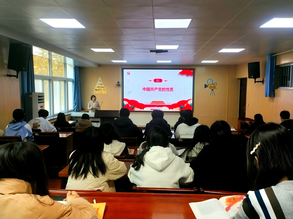11月26日上午9:00,我院党委书记曹玉松以《中国共产党的性质、宗旨和最高理想》为主题讲授分党课。曹书记从“中国共产党的性质”、“中国共产党的根本宗旨”、“中国共产党的最高理想”三个方面进行讲解。她讲到,大家要正确理解党的性质及宗旨的要求,牢记党员必须对党的最高理想和最终奋斗目标有明确的认识,为实现党的最高理想和最终奋斗目标而奋斗终生。同时,曹书记嘱咐入党积极分子,作为青年学生,要不断提升自己,不仅要在思想上入党,更要在行动上入党,在生活上、学习上起到模范带头作用,立志做有理想、敢担当、能吃苦、肯奋斗的新时代好青年。