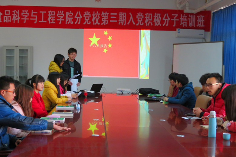 12月3日下午2点50分,2012级同学在C-306教室召开了“追忆光荣党史,炫动梦想起航”的主题团日活动。食品质量与安全二班团支书栗雯同学结合十八大报告中的中央对青年创业就业的关注向大家讲述了自己的大学四年规划以及未来创业开一家自己的蛋糕房的畅想。来自浙江杭州的华悦婷同学介绍了家乡大都市的生活,表达了对我们中原经济区建设的祝福。食品科学与工程班团支书聂新颖也带领大家观看了有关党的奋斗历程的视频。这次团学活动以一个更全新的方式让同学们“学党史,知党情,跟党走”,整个过程充满了青春的活力,洋溢着青春的气息,更加鼓励和吸引同学们向党组织靠拢。