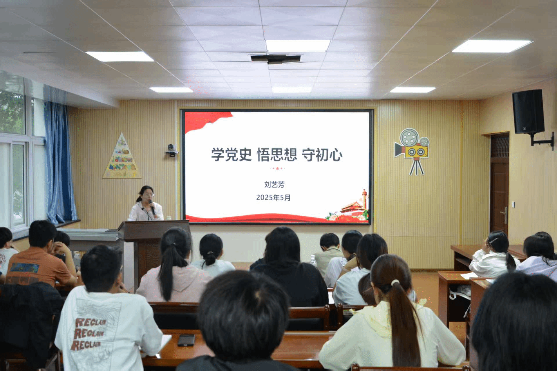 5月23日晚上,我院学生第二党支部书记刘艺芳以“学党史 悟思想 守初心”为主题讲授分党课。刘老师从“党的历史是共产党员的教科书、必修课、营养剂”、“党带领中国人民实现了站起来、富起来、强起来”、“感悟思想伟力、增强政治自觉,掌握历史主动”等三个方面进行讲解。刘老师先以时间为轴线,讲解了中国共产党波澜壮阔的革命史,系统梳理了党的重大事件、理论成果和宝贵经验。她讲到,各位入党积极分子要将党史牢记于心,要志存高远、担当使命、勇于砥砺奋斗,在实现中华民族伟大复兴的征程中绽放青春风采。