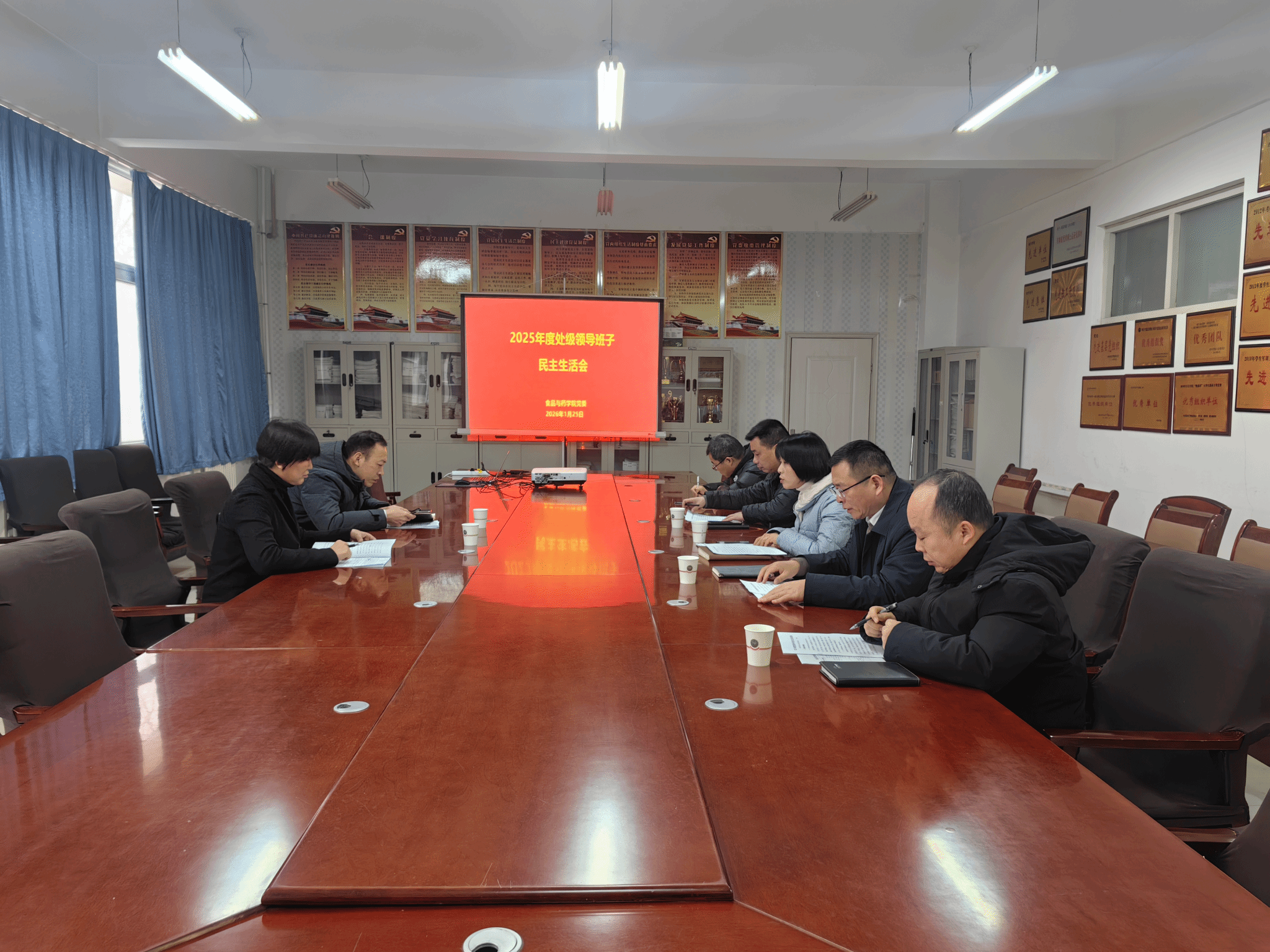 125日下午,我院在食药楼N208召开2025年度党员领导干部民主生活会。校党委第一督导组赵茹李自豪出席会议,院领导班子全体成员参加会议会议由院党委书记曹玉松主持。