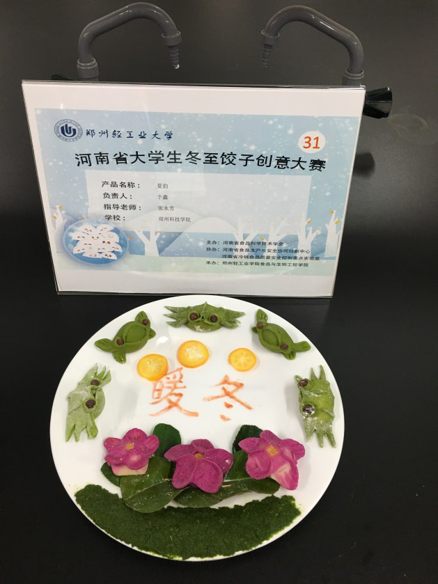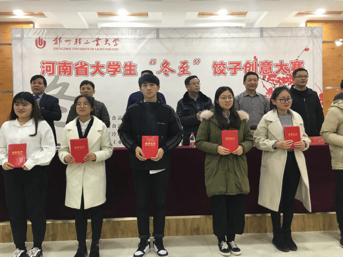2018年12月22日,河南省第二届大学生冬至饺子创意大赛在河南省郑州轻工业学院举办,大赛由河南省食品科学技术学会主办,河南省食品生产与安全协同创新中心、河南省冷链食品质量安全重点实验室协办,郑州轻工业大学食品与生物工程学院承办。我院共有42个项目参赛,初赛后有31个项目入围决赛,经过激烈的角逐,最终获得5个奖项,其中一等奖2个,二等奖1个和三等奖2个。