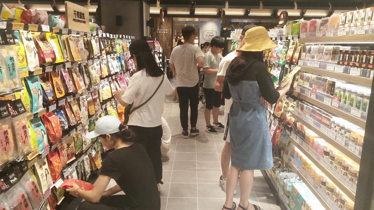 7月3日早上8点实践队员们在食品楼门口集合,前往云顶广场。到达广场一楼超市后,实践队员开始分配任务分组进行工作,在超市中查看每个类别的方便食品的食品添加剂组成表,并进行拍照,后期进行统一整理归纳。