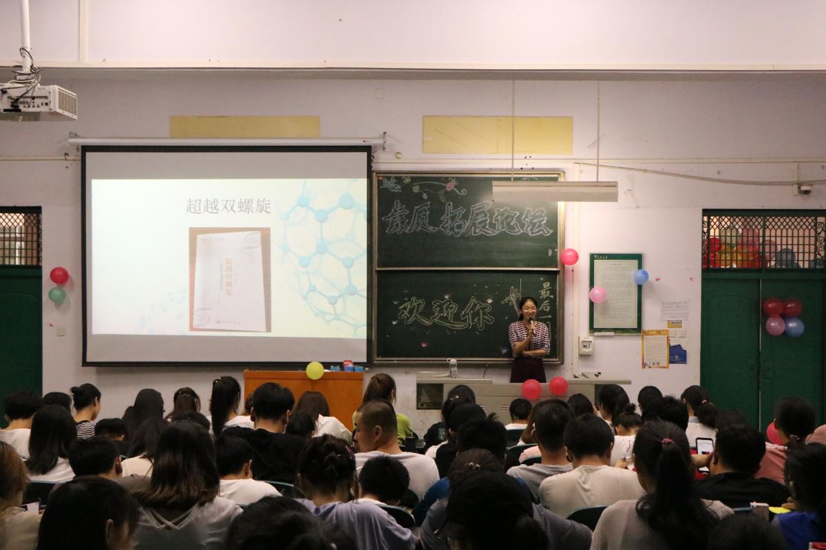 我院于6月16日晚七点在A4一楼东成功举办本学期最后一次素质拓展论坛活动。本次活动的主题是“结合分子学科研现状的超越双螺旋”,主讲人为复旦博士陈晨老师,我院150余名学生参与本次活动。