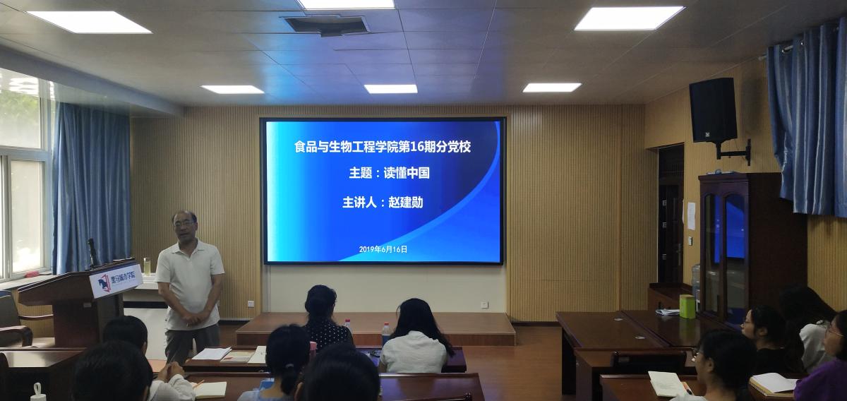 6月16日上午10:00,我院特约组织员赵建勋老师,在食品报告厅以“读懂中国”为主题,为我院入党积极分子进行授课。讲座以“我和我的许昌学院”展开对新时代中国梦的讲解。从许昌学院的转折,到师生逆境中奋发图强的奋起,最终到许昌学院的蝶变。折射出改革开放以来,新中国发生的巨大的变化。赵老师的讲解让在座的入党积极分子对中国梦有了进一步了解,更加坚定了入党初心和作为当代青年学子的时代使命。