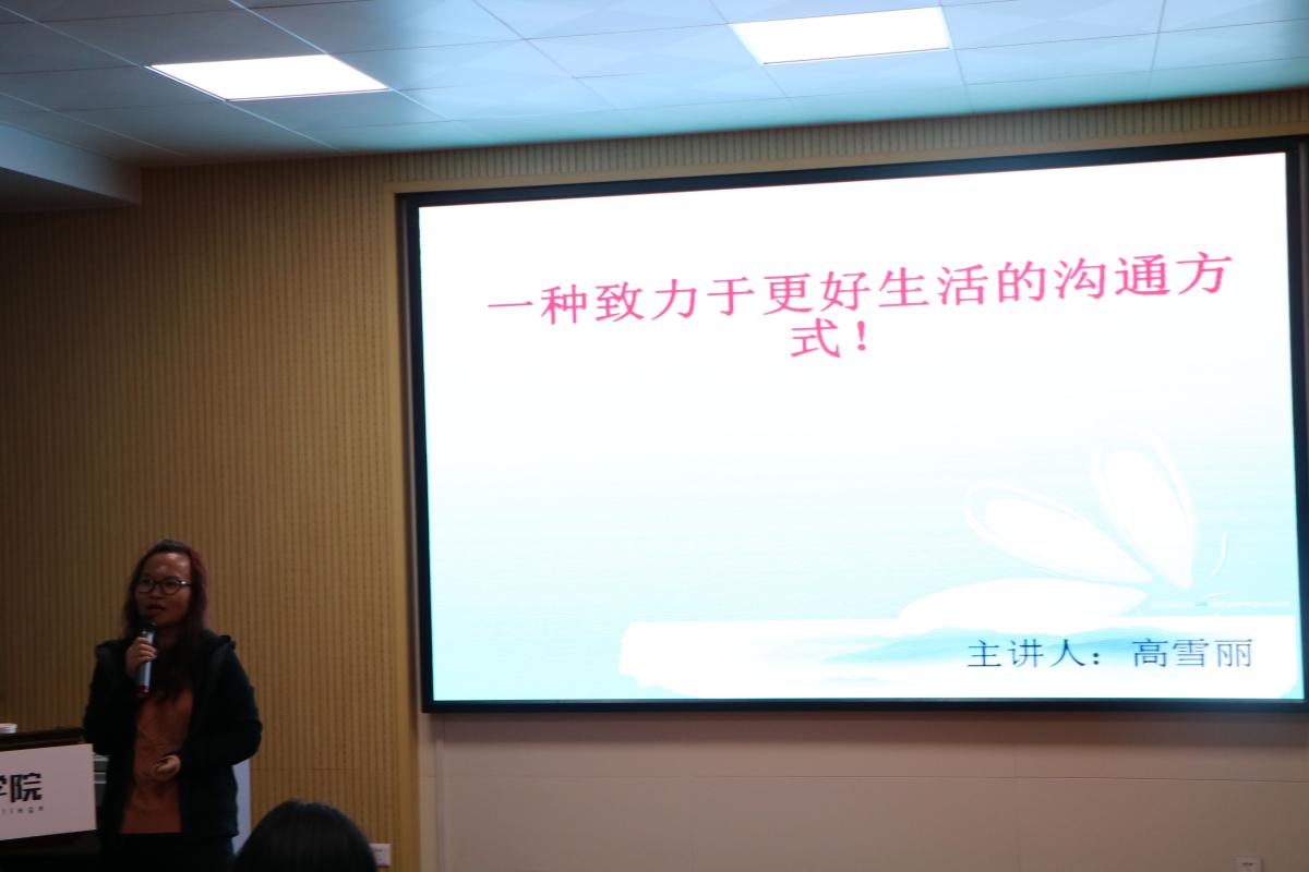 为使同学们掌握为人处事的沟通技巧,拥有良好的沟通能力,从而更好的与人沟通,营造和谐的人际关系,我院于11月4日晚七点在食品楼二楼报告厅举办了以 “一种致力于更好生活的沟通方式”为主题的第三期素质拓展论坛。由高雪丽博士担任此次论坛的主讲嘉宾,我院15、16、17级部分学生参与。