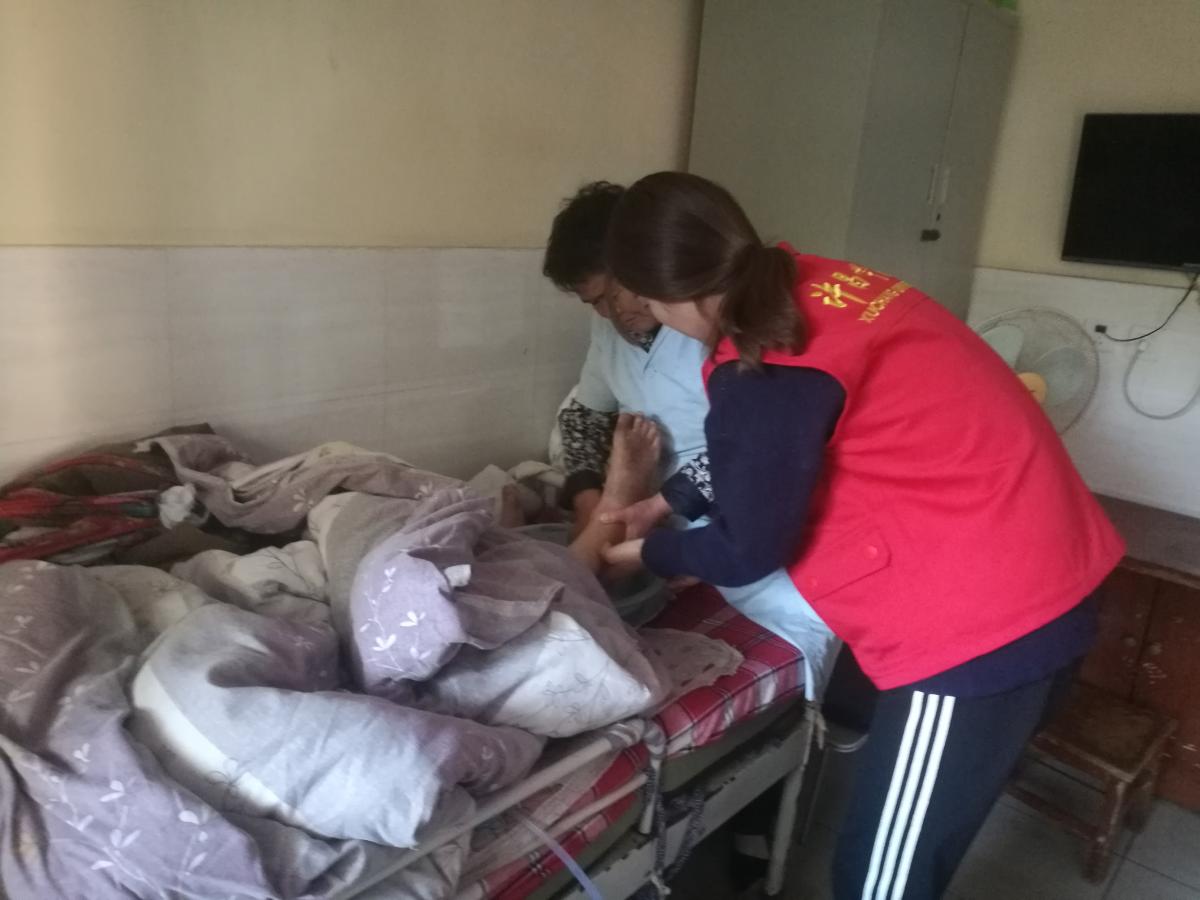 10月28下午,在许昌市老年公寓,各位党员发展对象一起与老人们谈心。志愿者们在树荫下陪老人们聊天,听老人们讲述青春往事,谈论人生道路,一生经历丰富的老人们,告诫志愿者们要好好学习,学习永无止境,不要止步于此,要敢于去尝试新事物,向更好的自己迈进。志愿者纷纷表示,愿意向更高的台阶奋进,为社会贡献自己的力量。由于很多老人行动不便,生活上不能自理,党员发展对象们便给老人洗脚、按摩以及穿衣服,使得老人的生活更加舒适。志愿者们更是手把手教老人使用智能手机,以便于老人能和家人视频聊天,老人们纷纷表示感谢志愿者们的热心帮助。老人已成为我国的一个大群体,党员发展对象关爱老人,给予老人温暖关怀,弘扬中华民族尊老敬老的传统美德,为中华民族传统美德的传承做出青年一代的承诺!