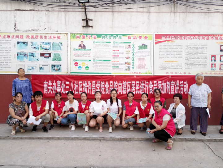 7月6号上午九点半,16食工1班“觅真知”实践队全体队员一起前往南关大街决定对小区的居民进行一次食品添加剂方面的知识宣讲。抵达小区之后,便向居民们分发事先打印好的宣传页,让他们了解一下生活中常见的食品中添加剂的种类以及在食品中的作用。之后负责人与小区物业管理部门结合,给居民们具体讲解了一下食品添加剂的定义及应用,并解释它们是否有危害。此外,队员们又为居民提出了怎样购物才能买到让人更加放心的食品的建议。宣讲结束后,大家又帮助社区居民进行了社区卫生环境打扫,获得了居民们的一致好评。最后队员们与社区居民进行了合影留念,来记录这有意义的宣讲活动。