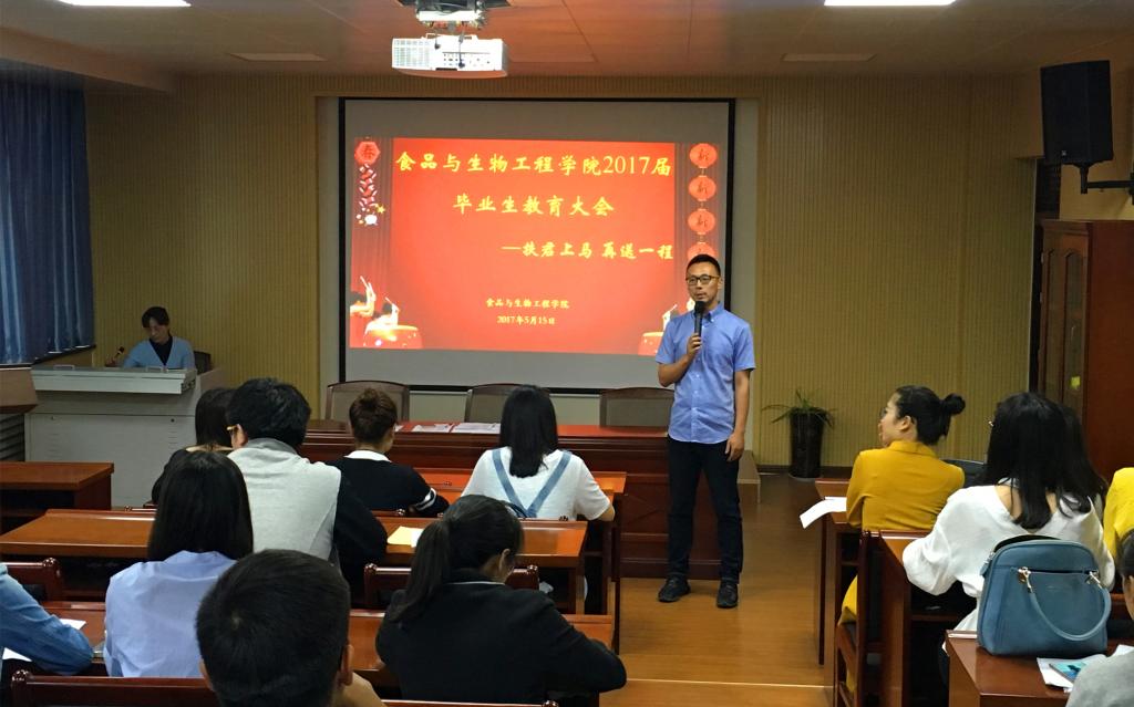 会议结束后,全体毕业生以班级为单位签订了文明离校承诺书,全体学生党员签订了毕业期间的安全责任书,在此我院也发布了《食品与生物工程学院2017届毕业生文明离校倡议书》,号召全体毕业生把握好宝贵大学时光,为最后几周的大学生活划上圆满句号,满怀信心和收获地走向社会。(沈于粮 陈荣华)