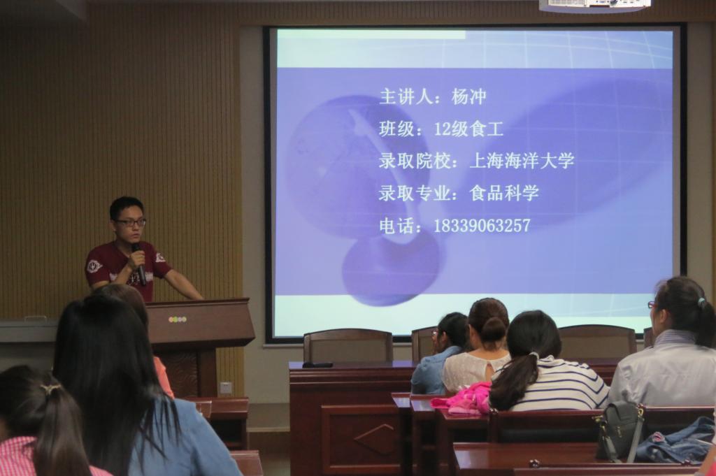为帮助我院广大立志考研的学子确立正确的成才观,更好地制定人生规划,同时帮助他们解决关于研究生备考过程中的各种困惑和问题,我院于5月20日晚六点在食品楼报告厅举行了2016届考研经验交流会。