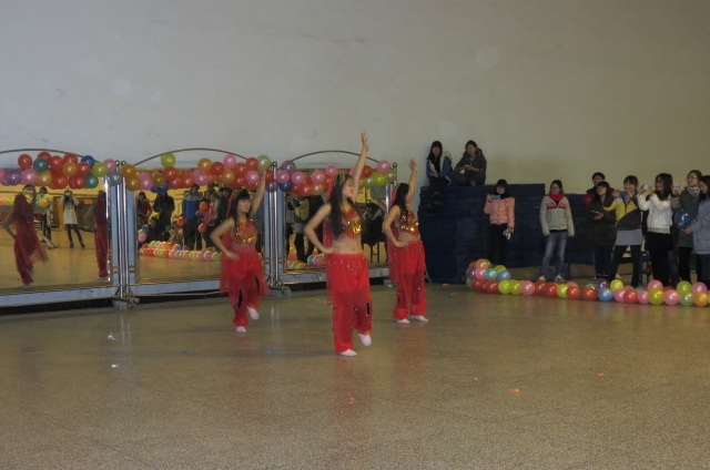 本次活动,以舞会为主、游戏为辅进行。舞会在动听的音乐声中准时开始,由大一学生带来的开场舞《爱的华尔兹》,把舞会的气氛瞬间带动了起来,大家都跟随着台上同学的舞步,跳动了起来。之后刘亚鹏等同学,上台演唱了《春暖花开》等歌曲,寄托了同学们对新年的期盼和祝愿。接着举行的猜字谜游戏也吸引不少同学参加,大家一个比划一个猜词玩得不亦乐乎。最后在曼妙多姿的印度舞中,结束了这场精彩的舞会。