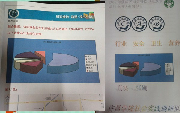 7月3日下午许昌学院食品科学与工程学院“街头餐饮卫生社会调研队”队员代表带着装订精美的调研报告进入了魏都区卫生局,报告得到了卫生局副局长和卫生执法大队队长的充分肯定,孟队长表示:食品安全必须重视,你们的调研很有深度,很准确,和谐许昌的构建离不开你们的帮助。